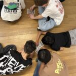 Wir kamen an und wurden begrüsst. Danach haben wir Spiele gespielt und mussten Englisch reden. Wir haben noch am Schluss mit Kohle gezeichnet. Dann haben wir noch ein Trotti aus dem Brunnen gerettet.