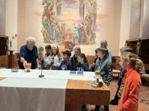 Am Mittwoch, dem 24.9.2025 ging die 5./6. B in die katholische Kirche Birmenstorf. Der Sakristan Franz Humbel zeigte uns die Kirche und machte mit uns eine kleine Führung durch die Kirche. Die Kirche ist ein erstaunlicher Ort, sie bringt sogar unsere Klasse zum Schweigen;). Er zeigte uns den Altar, die Orgel und die Sakristei. Dann gingen wir noch kurz zur Freskenkapelle und auch noch kurz zum Friedhof.